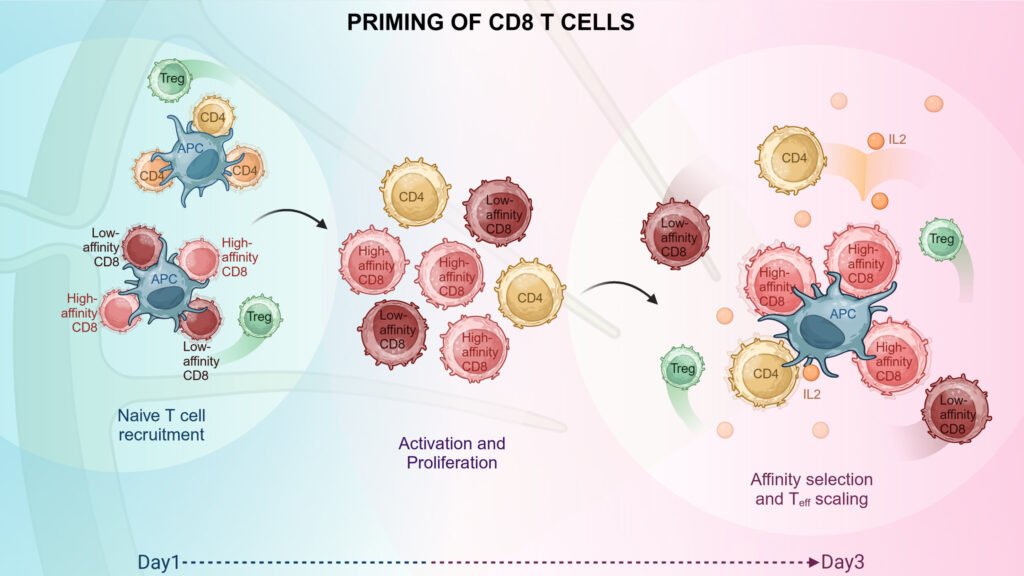 Un equipo del Grupo de Investigación Max Planck de Inmunología de Sistemas de la Universidad de Würzburg ha identificado una fase previamente desconocida de la respuesta inmunitaria. Los resultados, publicados en Science, desafían las suposiciones tradicionales sobre el proceso denominado cebado de células T. Estos nuevos descubrimientos tienen importantes implicaciones para el desarrollo de vacunas e inmunoterapias celulares.
